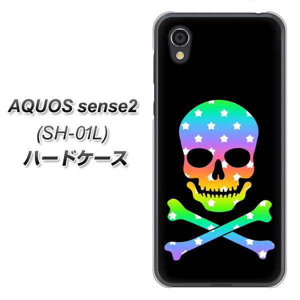 docomo アクオスセンス2 SH-01L 高画質仕上げ 背面印刷 ハードケース【1072 ドクロフレームレインボースター】