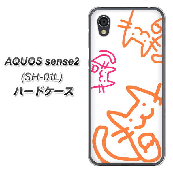 docomo アクオスセンス2 SH-01L 高画質仕上げ 背面印刷 ハードケース【1098 手まねきする3匹のネコ】