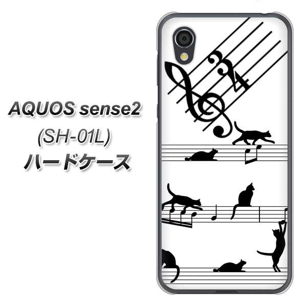 docomo アクオスセンス2 SH-01L 高画質仕上げ 背面印刷 ハードケース【1112 音符とじゃれるネコ2】