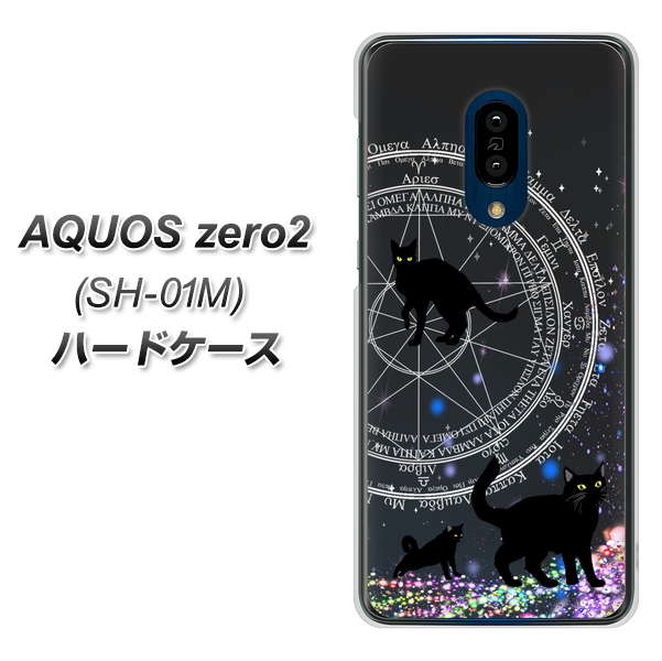 docomo アクオスゼロ2 SH-01M 高画質仕上げ 背面印刷 ハードケース【YJ330 魔法陣猫 キラキラ 黒猫】
