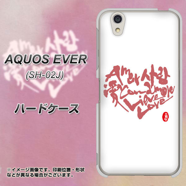 docomo アクオスエバー SH-02J 高画質仕上げ 背面印刷 ハードケース【OE801 世界の言葉で「愛(ホワイト)」のデザイン筆文字(書道家作品)】