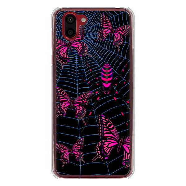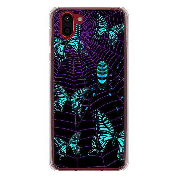AQUOS R2 SH-03K docomo 高画質仕上げ 背面印刷 ハードケース むかいあぐる 蜘蛛の巣に舞う蝶