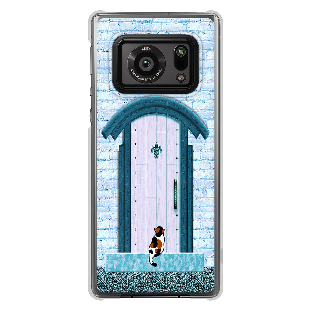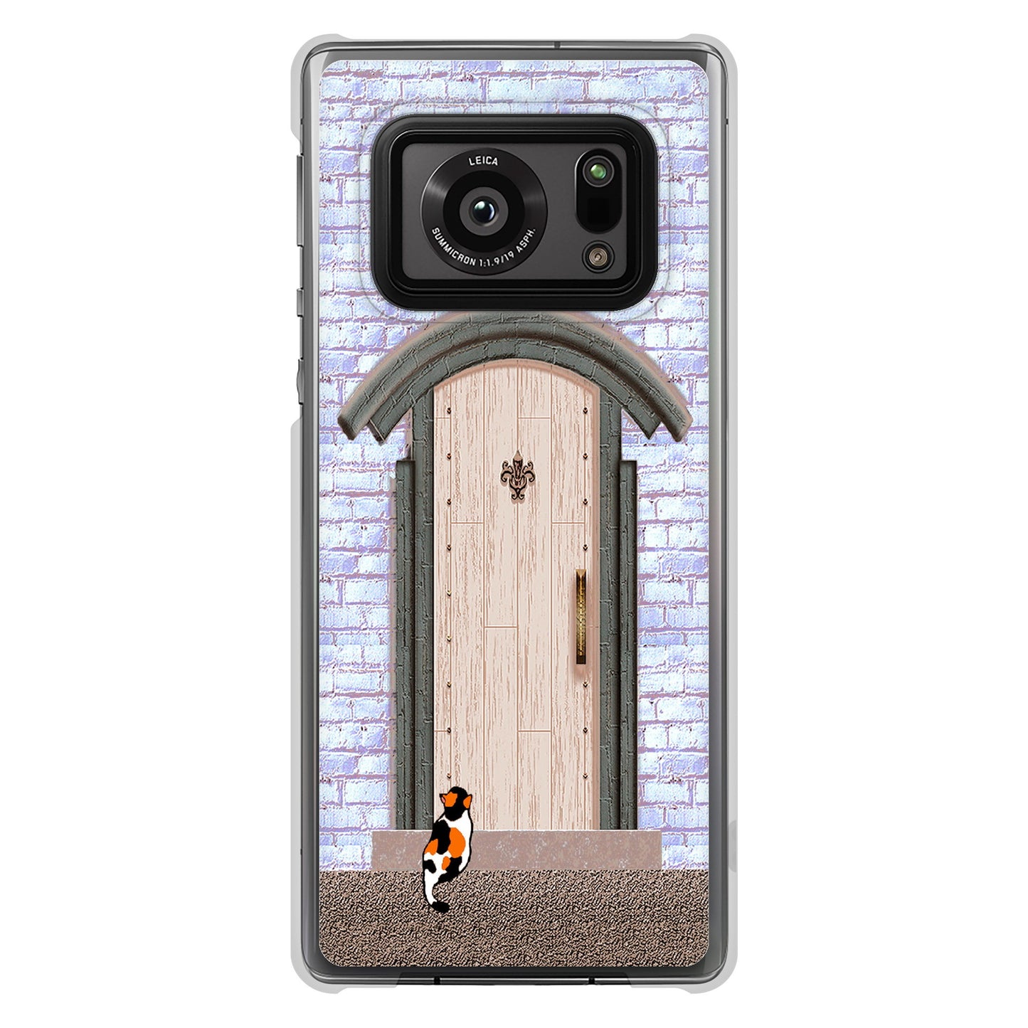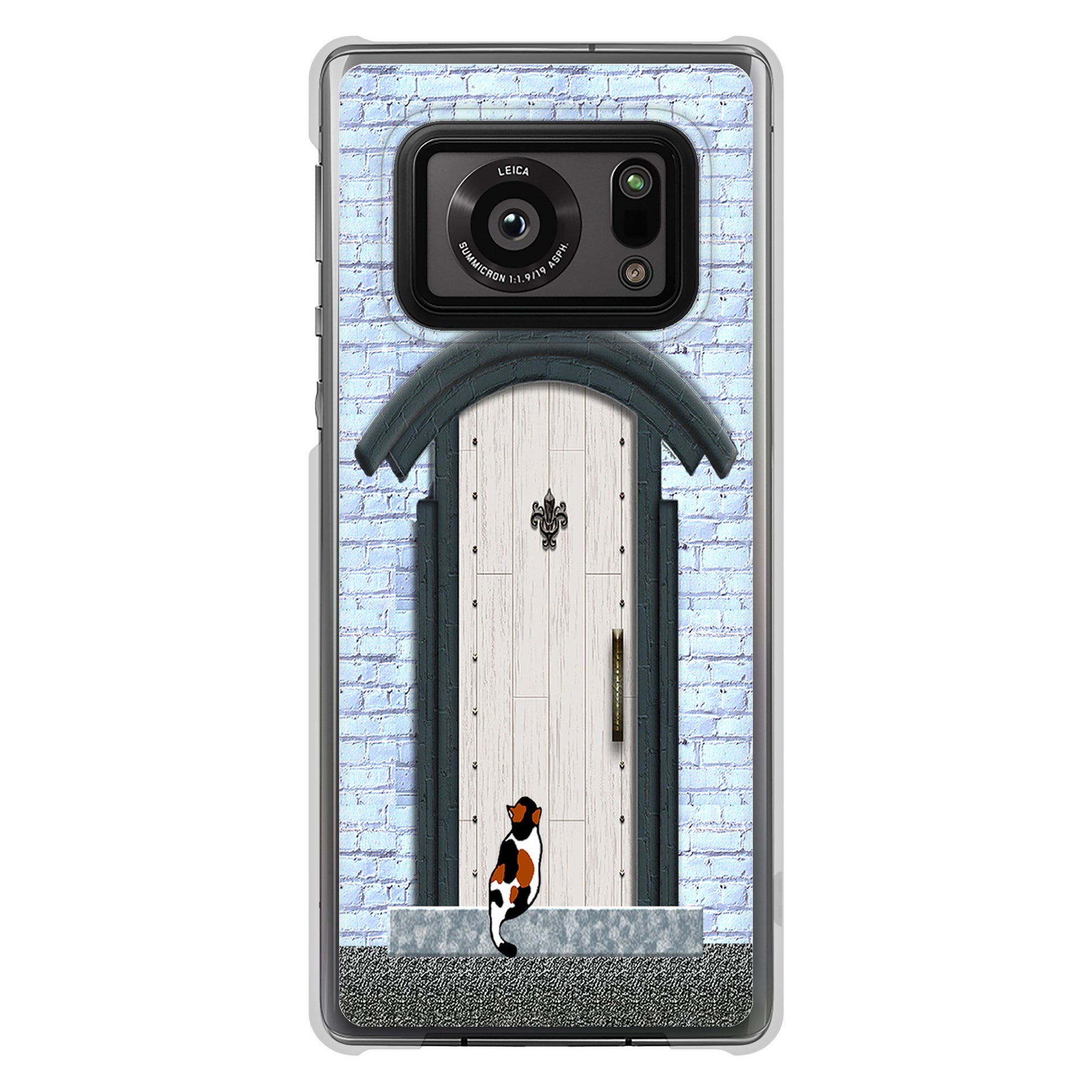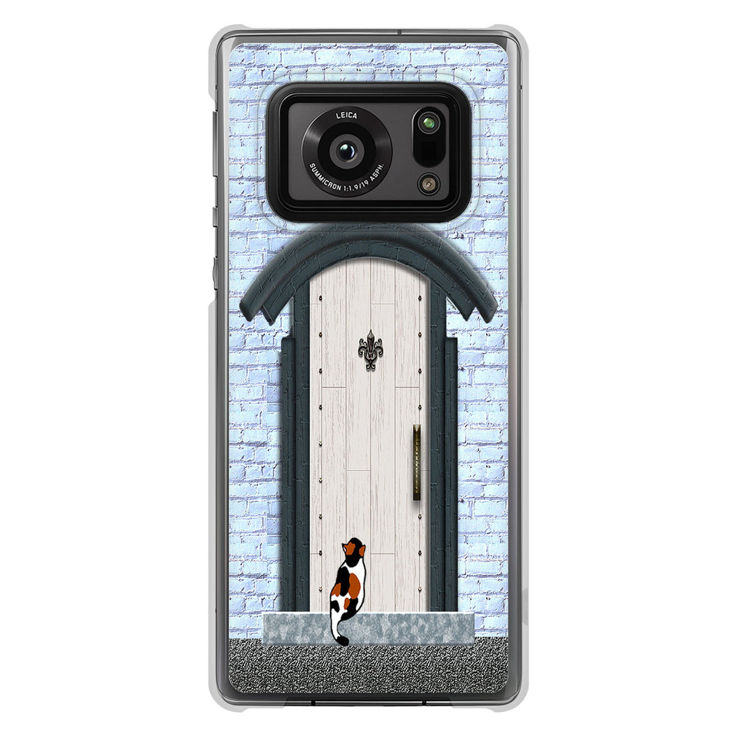 AQUOS R6 SH-51B 高画質仕上げ 背面印刷 ハードケース 猫とドア