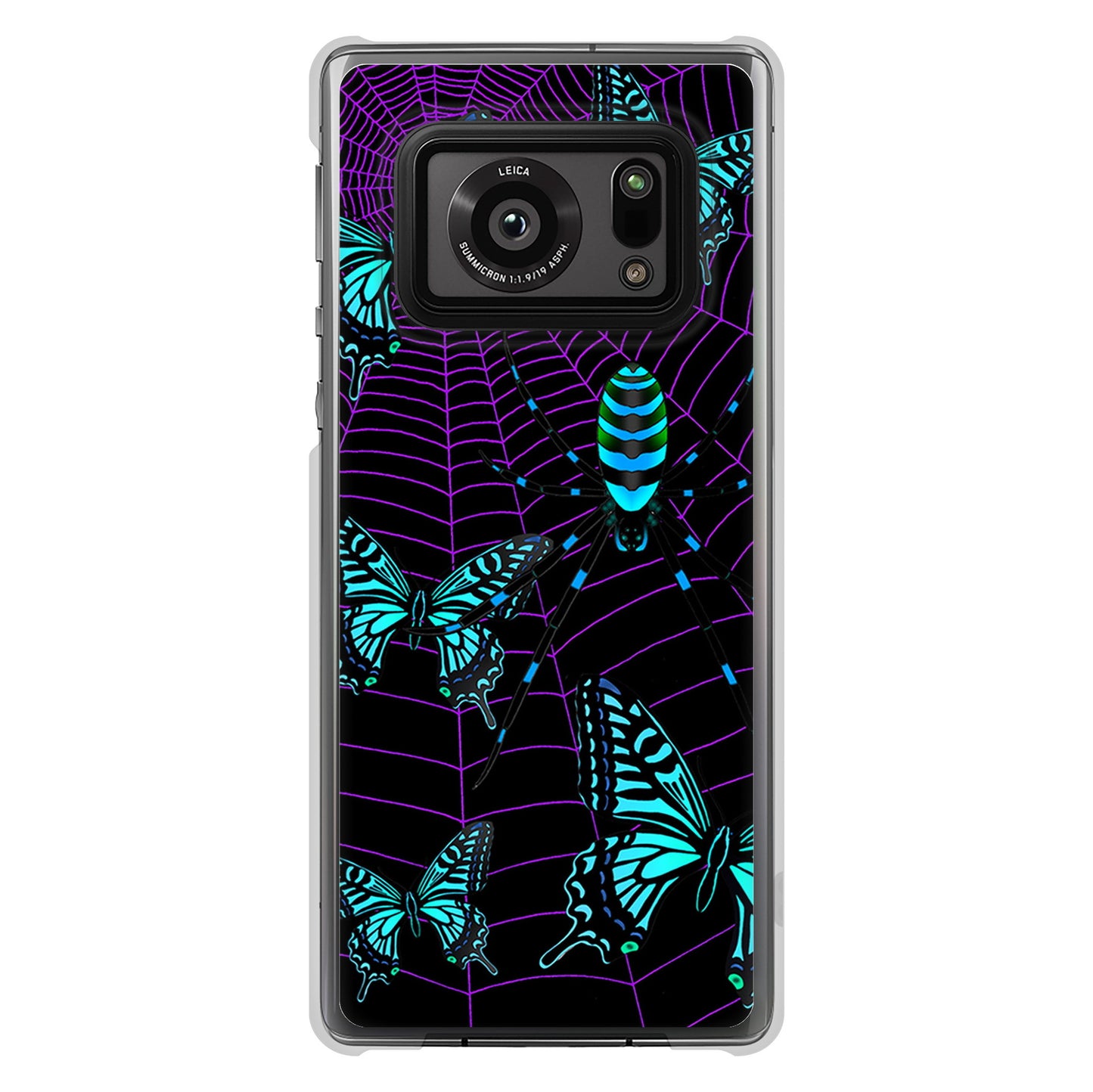 AQUOS R6 SH-51B 高画質仕上げ 背面印刷 ハードケース むかいあぐる 蜘蛛の巣に舞う蝶