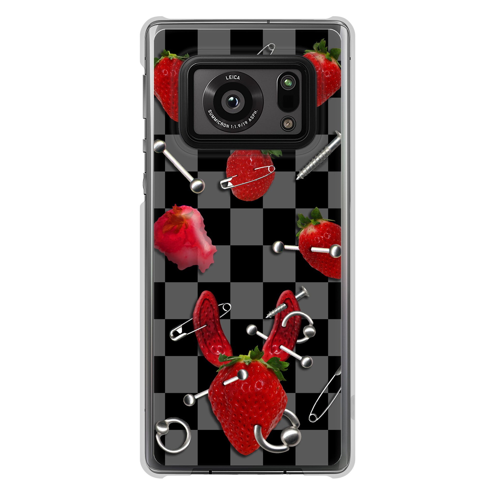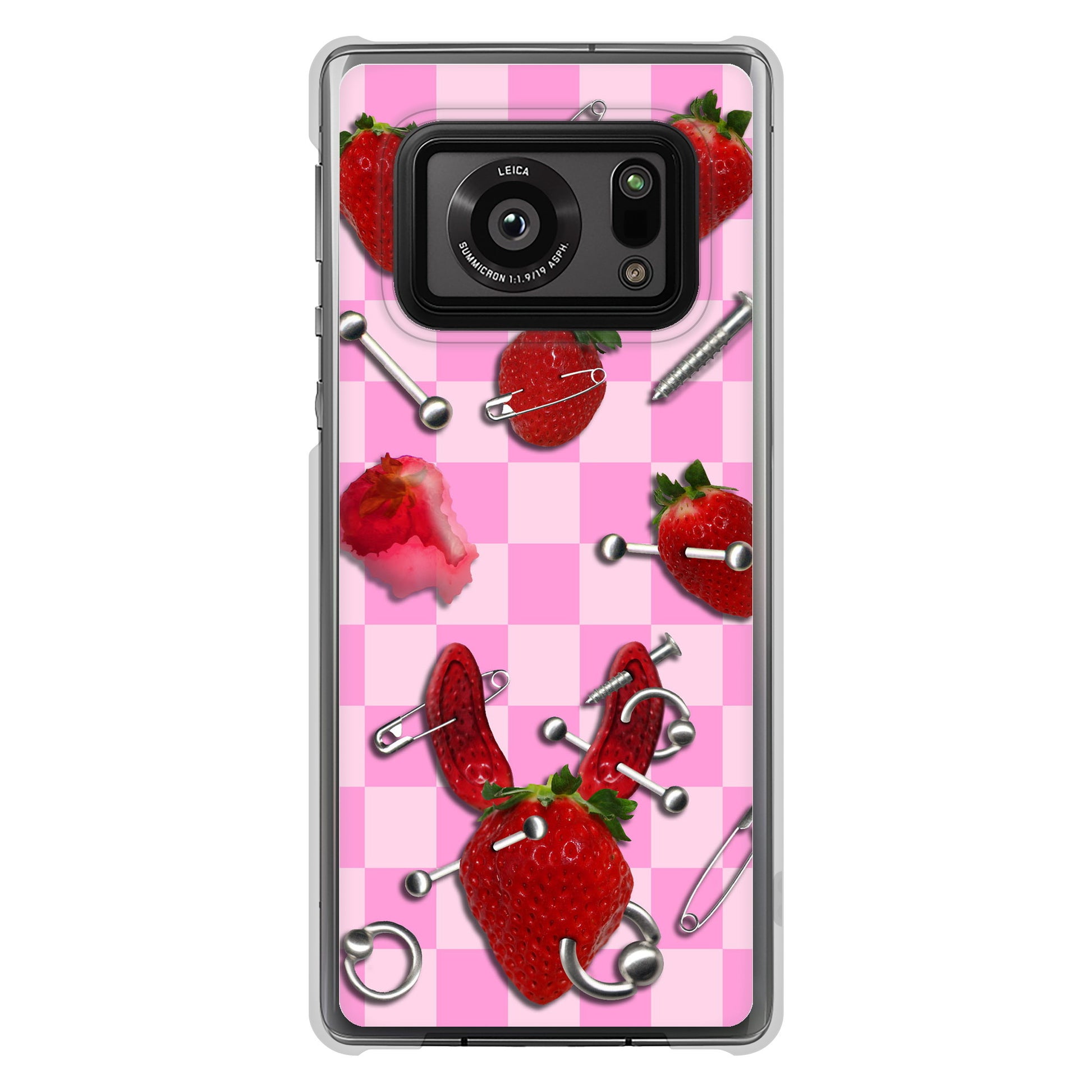 AQUOS R6 SH-51B 高画質仕上げ 背面印刷 ハードケース むかいあぐる 苺パンク