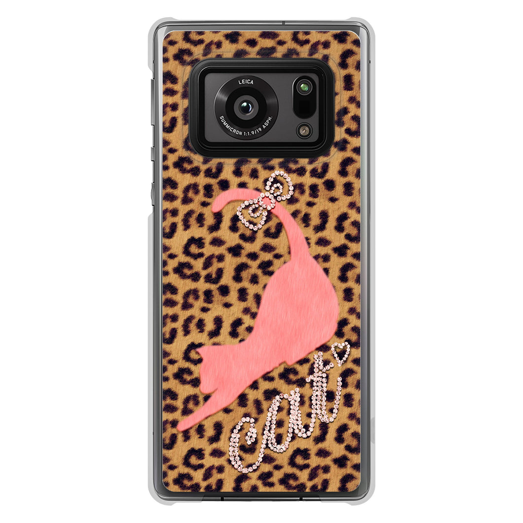 AQUOS R6 SH-51B 高画質仕上げ 背面印刷 ハードケース 【KG801 キャットレオパード(ブラウン)】
