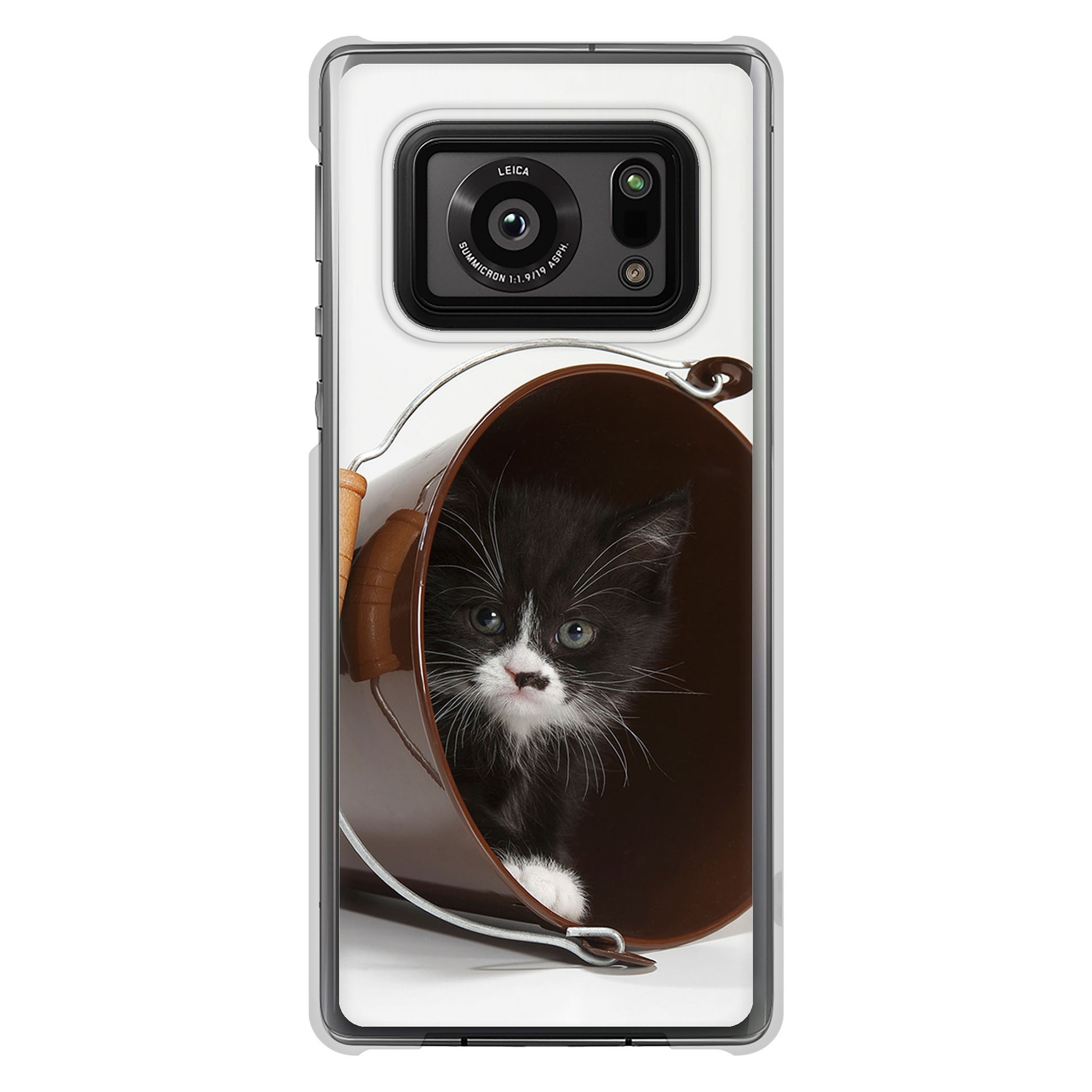 AQUOS R6 SH-51B 高画質仕上げ 背面印刷 ハードケース 【VA800 ネコとバケツ】