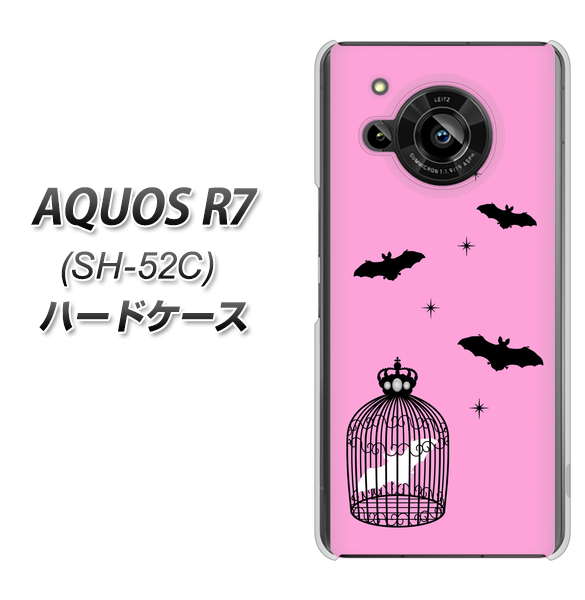 AQUOS R7 SH-52C docomo 高画質仕上げ 背面印刷 ハードケース【AG808 こうもりの王冠鳥かご(ピンク×黒)】