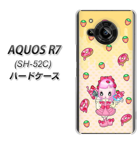 AQUOS R7 SH-52C docomo 高画質仕上げ 背面印刷 ハードケース【AG815 ストロベリードーナツ(水玉黄)】