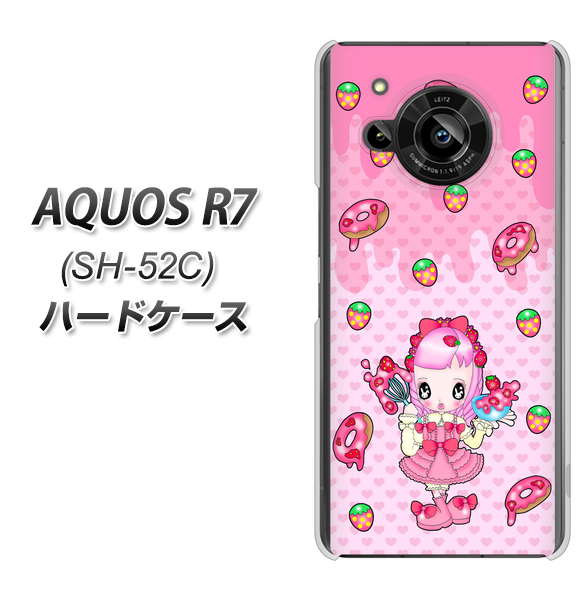 AQUOS R7 SH-52C docomo 高画質仕上げ 背面印刷 ハードケース【AG816 ストロベリードーナツ(水玉ピンク)】