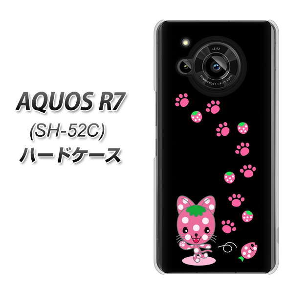 AQUOS R7 SH-52C docomo 高画質仕上げ 背面印刷 ハードケース【AG820 イチゴ猫のにゃんベリー(黒)】