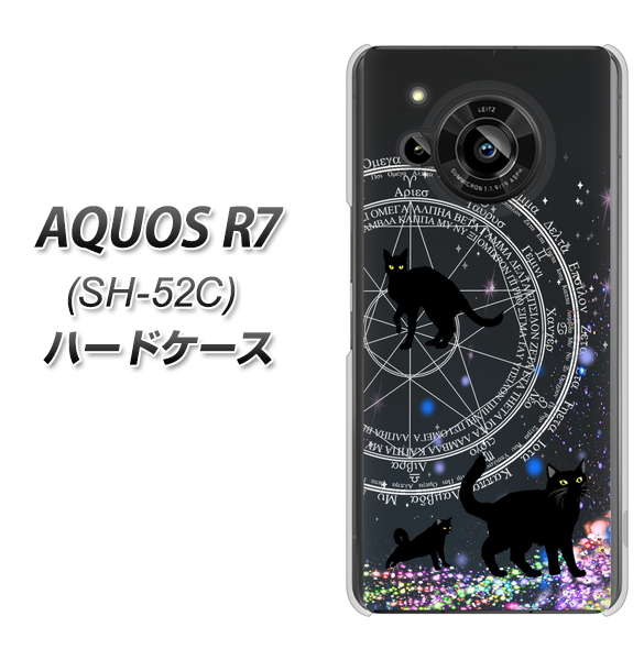 AQUOS R7 SH-52C docomo 高画質仕上げ 背面印刷 ハードケース【YJ330 魔法陣猫 キラキラ 黒猫】