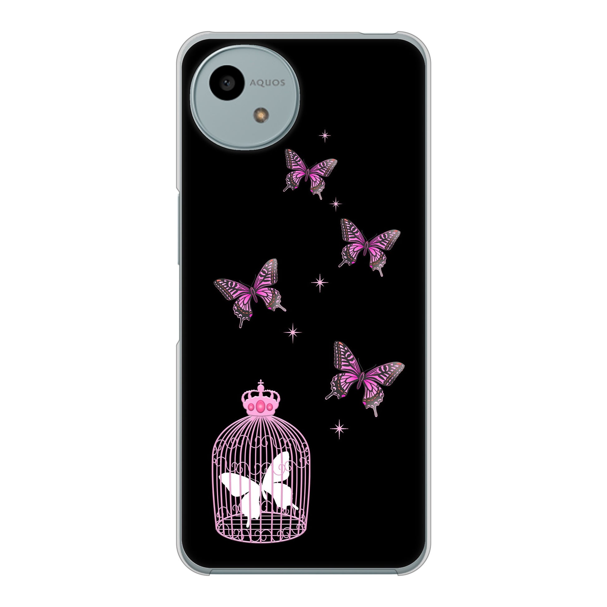 AQUOS wish4 SH-52E docomo 高画質仕上げ 背面印刷 ハードケースむかいあぐる 蝶の王冠鳥かご