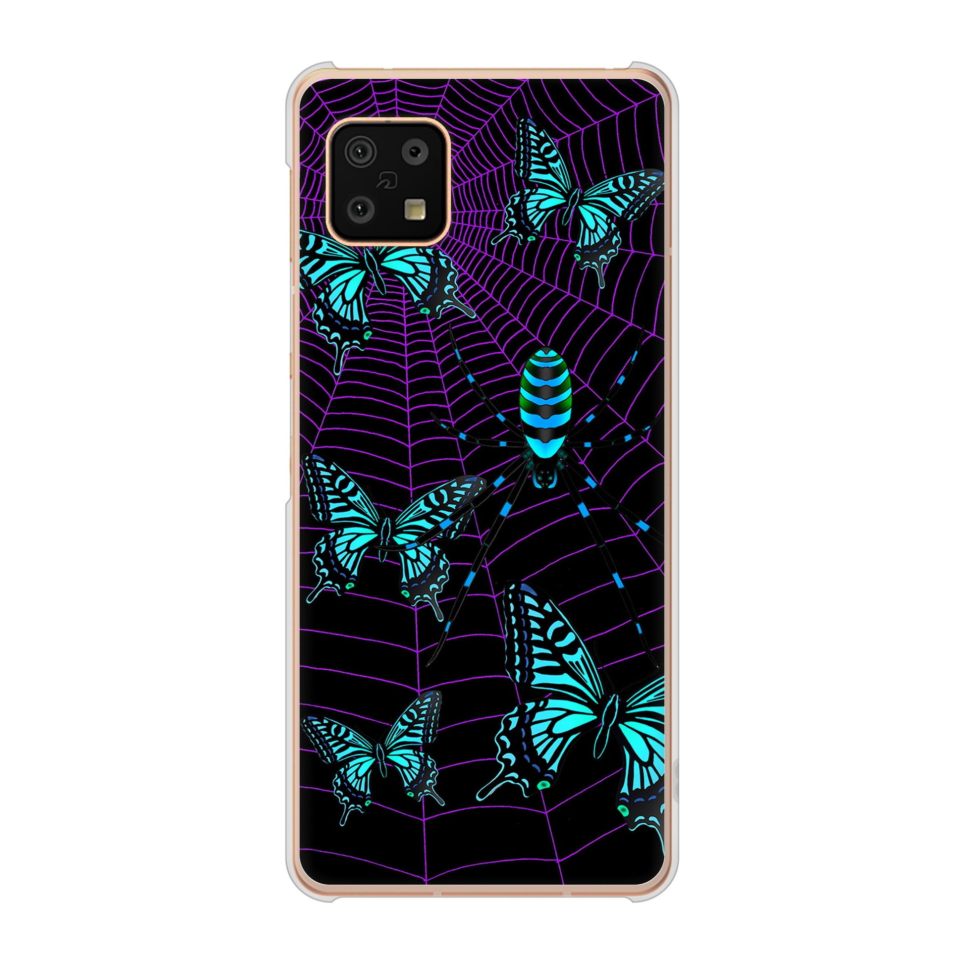 AQUOS sense6 SH-54B docomo 高画質仕上げ 背面印刷 ハードケース むかいあぐる 蜘蛛の巣に舞う蝶