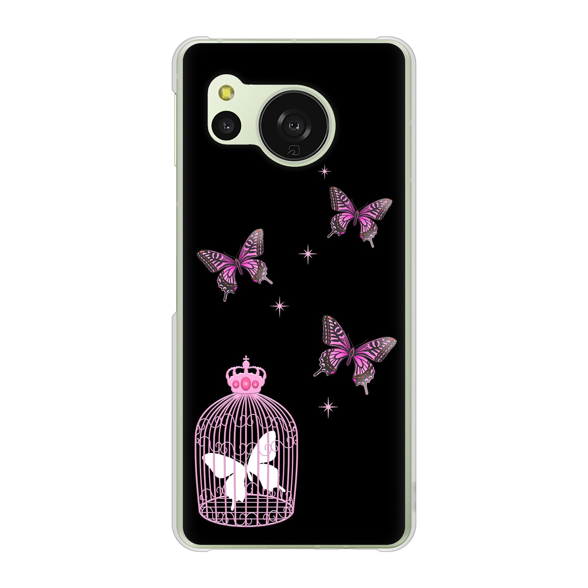 AQUOS sense8 SH-54D docomo 高画質仕上げ 背面印刷 ハードケースむかいあぐる 蝶の王冠鳥かご