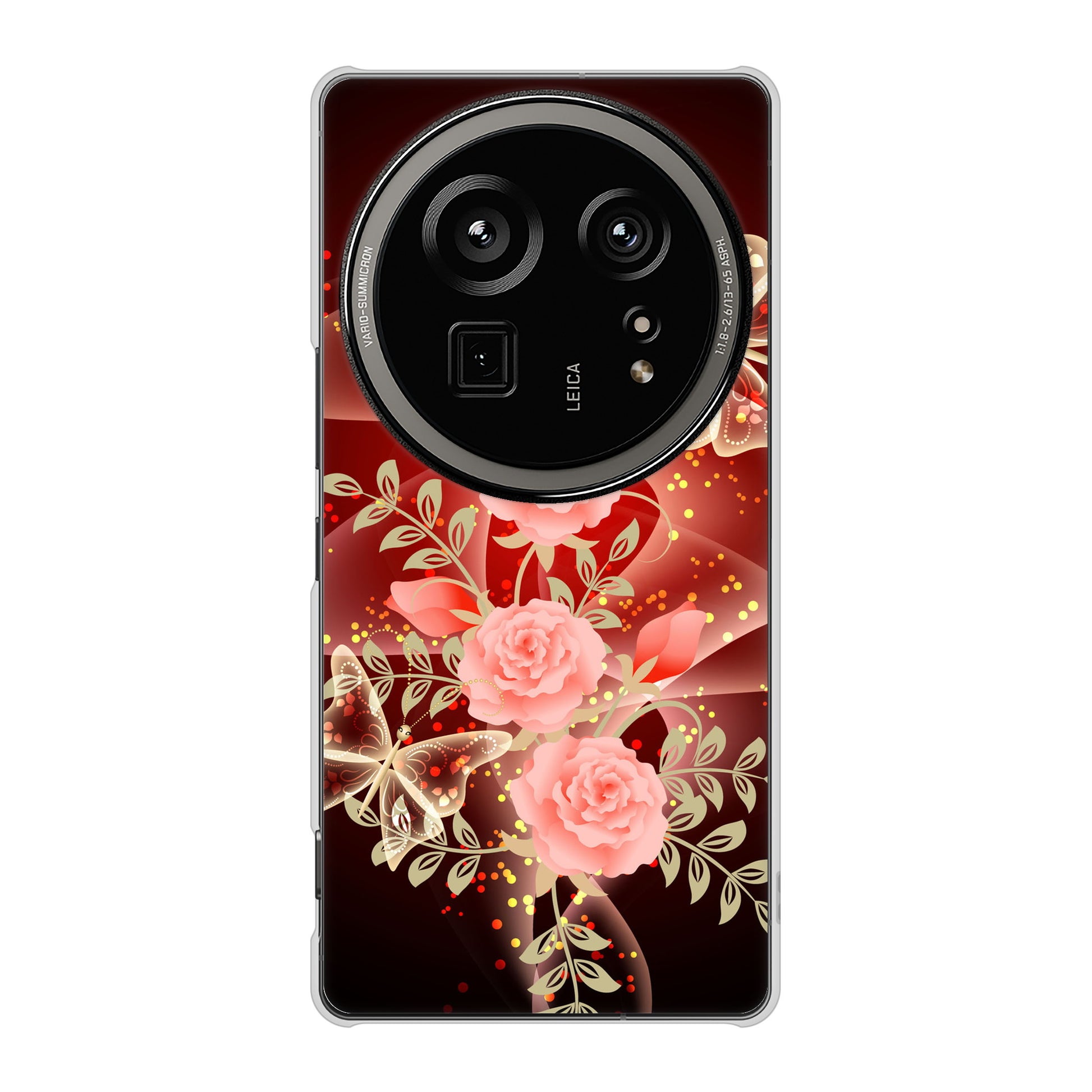 AQUOS R9 pro SH-54E docomo 高画質仕上げ 背面印刷 ハードケース 【VA824 魅惑の蝶とピンクのバラ】