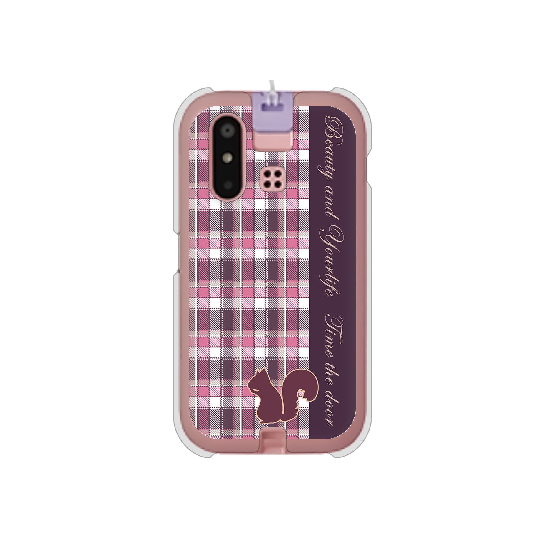 mamorino6 SHF35 au 高画質仕上げ 背面印刷 ハードケース【519 チェック柄にリス】