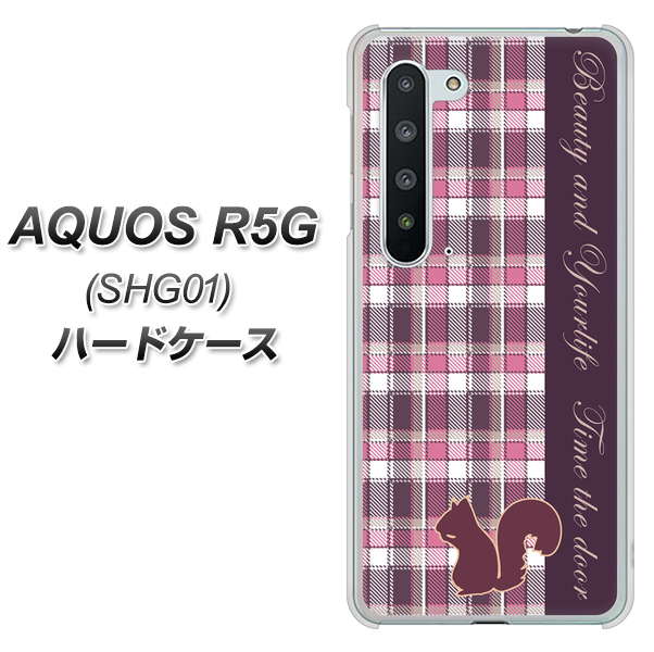 au アクオス R5G SHG01 高画質仕上げ 背面印刷 ハードケース【519 チェック柄にリス】