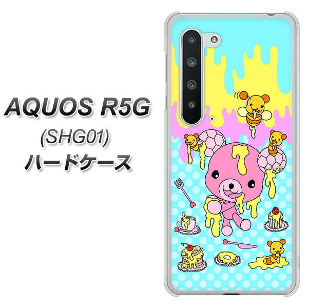 au アクオス R5G SHG01 高画質仕上げ 背面印刷 ハードケース【AG821 ハニベア(水玉水色)】