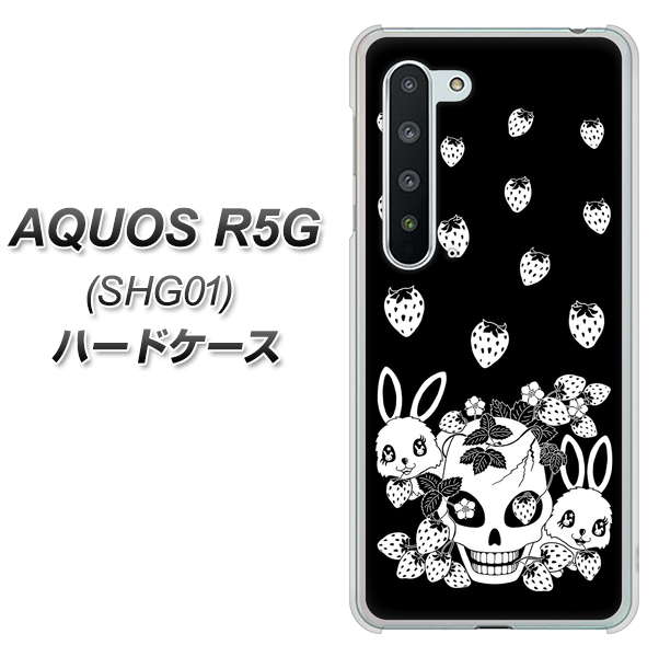 au アクオス R5G SHG01 高画質仕上げ 背面印刷 ハードケース【AG837 苺兎(黒)】