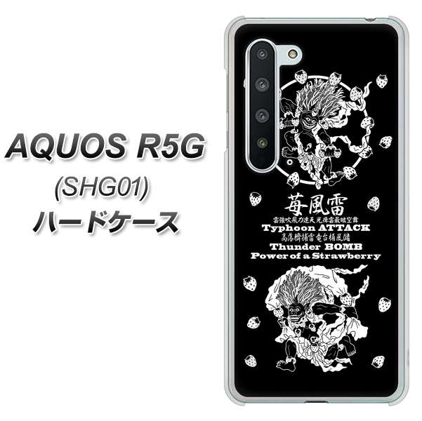 au アクオス R5G SHG01 高画質仕上げ 背面印刷 ハードケース【AG839 苺風雷神(黒)】