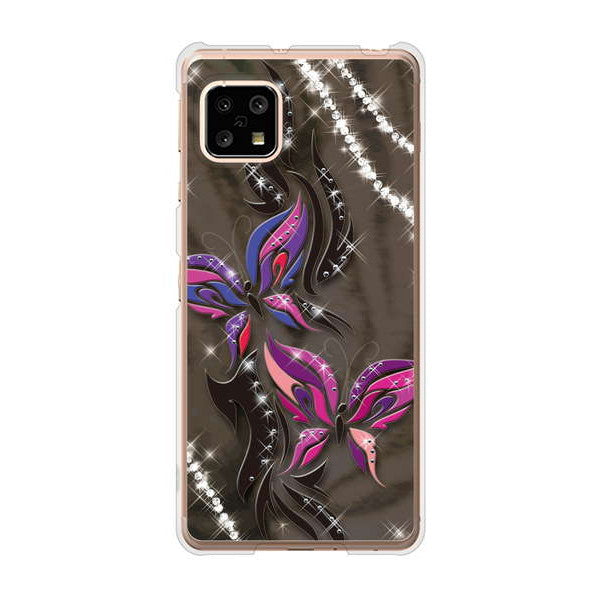 AQUOS sense5G SHG03 au 高画質仕上げ 背面印刷 ハードケース 【1164 キラめくストーンと蝶】
