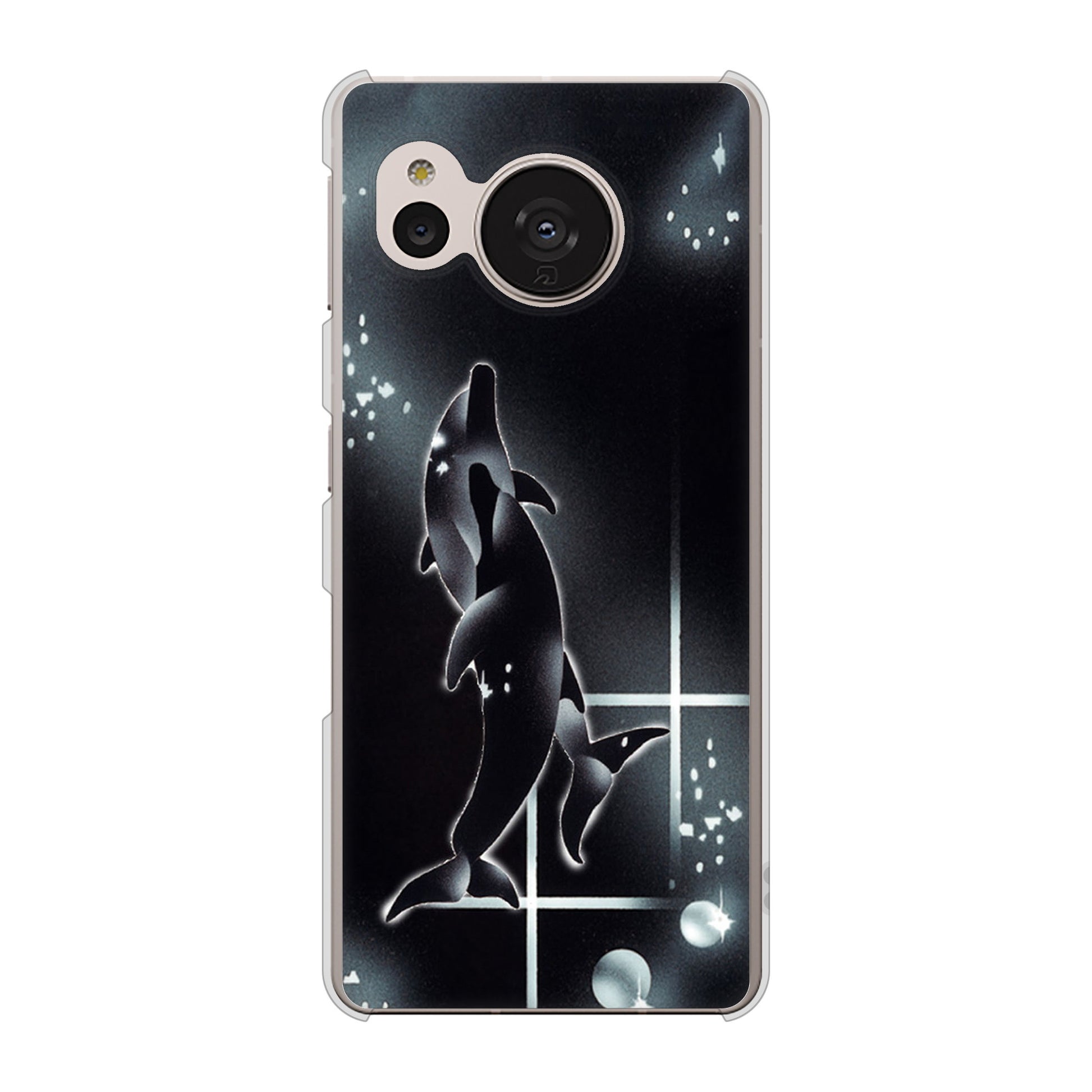 AQUOS sense7 SHG10 au 高画質仕上げ 背面印刷 ハードケース【158 ブラックドルフィン】