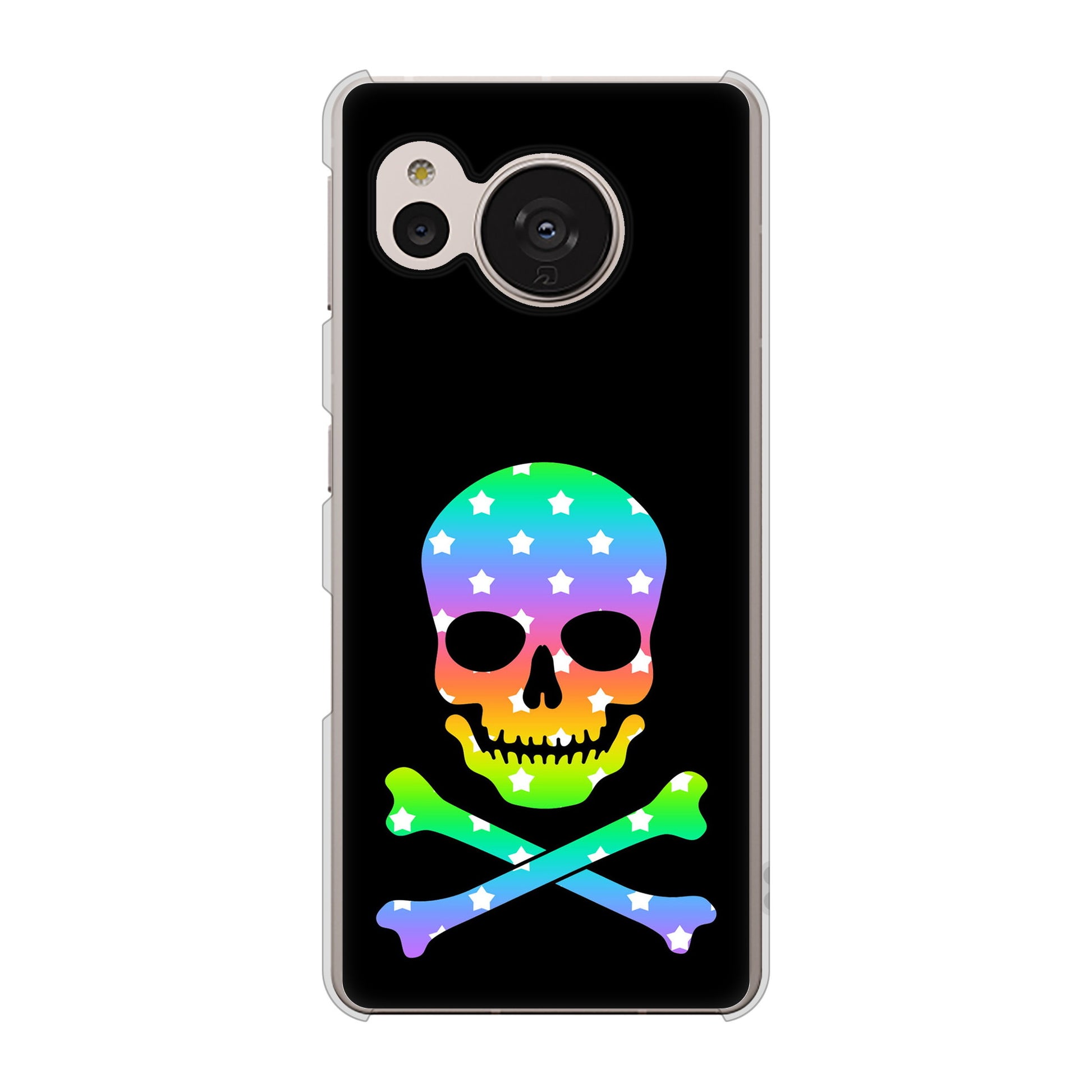 AQUOS sense7 SHG10 au 高画質仕上げ 背面印刷 ハードケース【1072 ドクロフレームレインボースター】