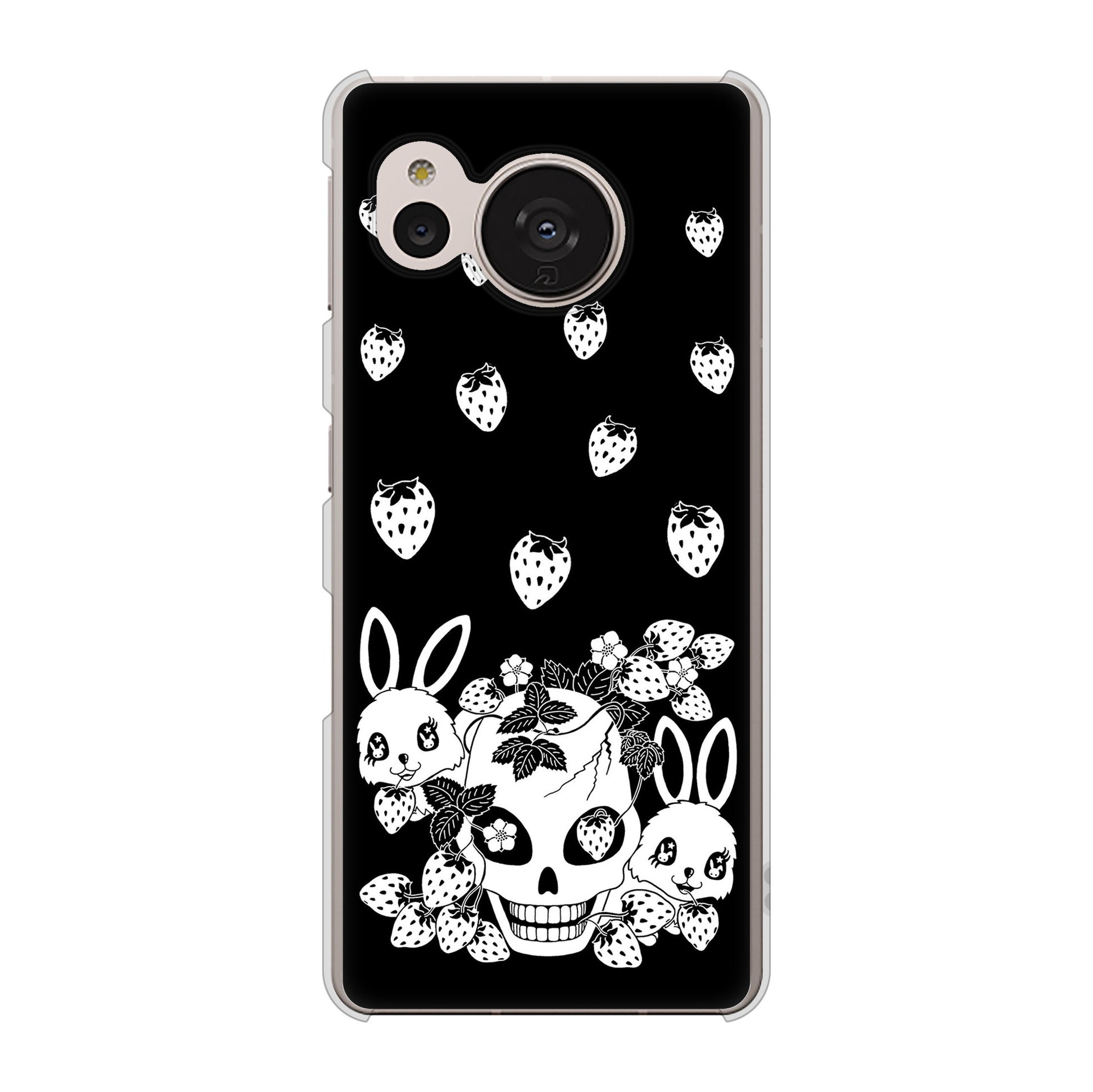AQUOS sense7 SHG10 au 高画質仕上げ 背面印刷 ハードケース【AG837 苺兎(黒)】
