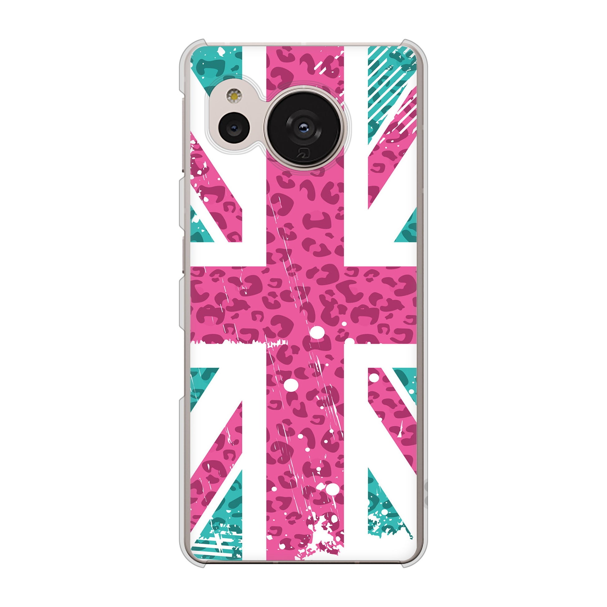 AQUOS sense7 SHG10 au 高画質仕上げ 背面印刷 ハードケース【SC807 ユニオンジャック ピンクヒョウ柄】