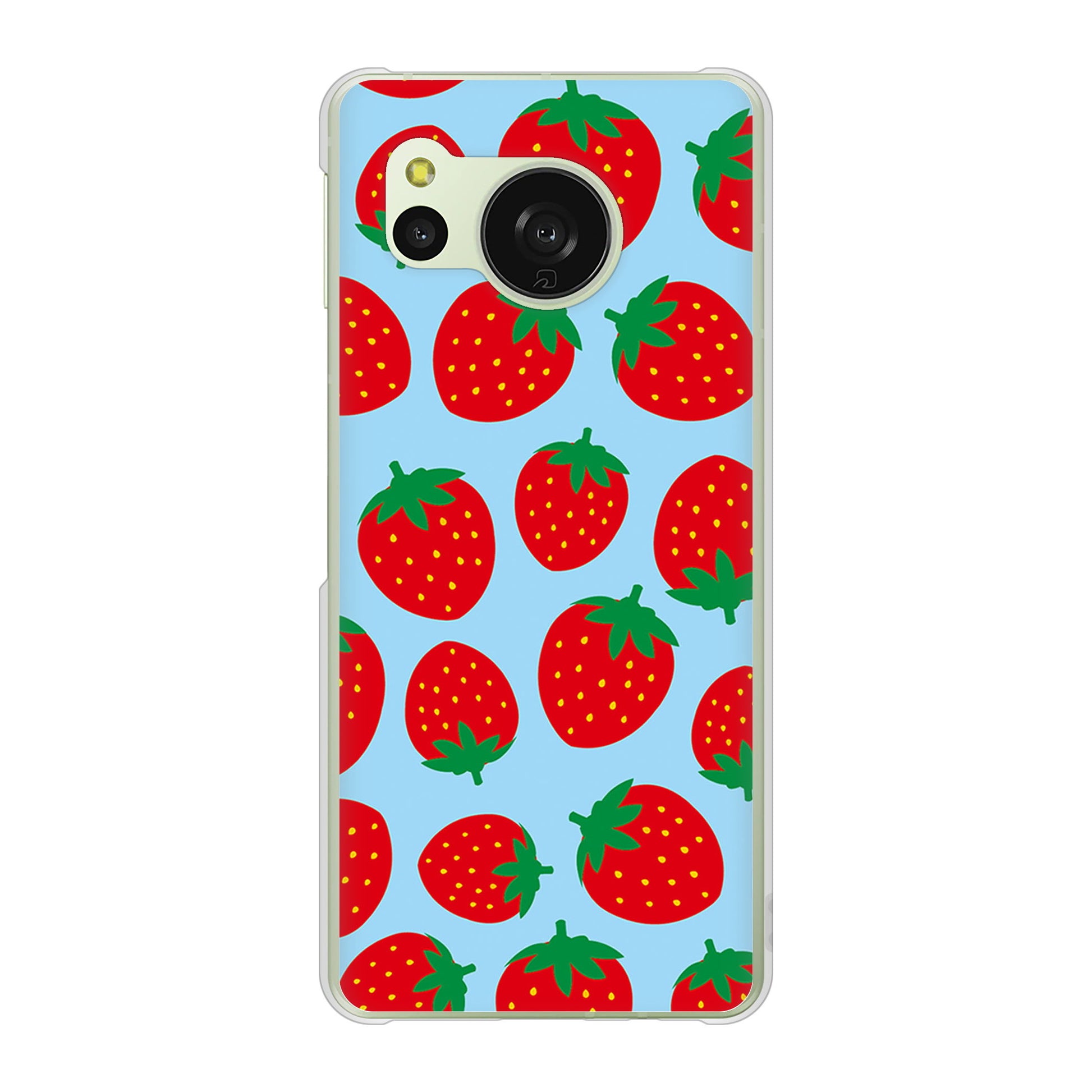 AQUOS sense8 SHG11 au 高画質仕上げ 背面印刷 ハードケース小さいイチゴ模様