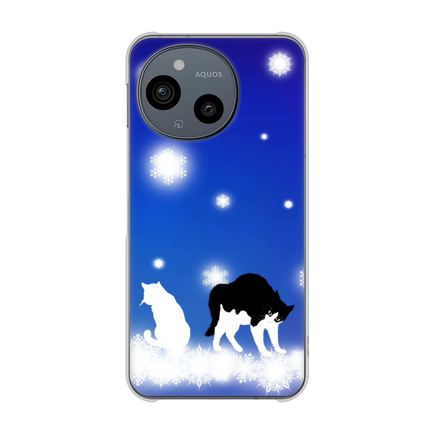 AQUOS sense9 SHG14 au 高画質仕上げ 背面印刷 ハードケース 【YJ335 雪の結晶 はちわれ】