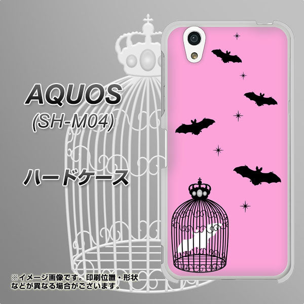 アクオス SH-M04 高画質仕上げ 背面印刷 ハードケース【AG808 こうもりの王冠鳥かご(ピンク×黒)】