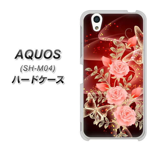 アクオス SH-M04 高画質仕上げ 背面印刷 ハードケース【VA824 魅惑の蝶とピンクのバラ】