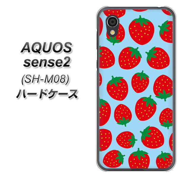 アクオスセンス2 SH-M08 高画質仕上げ 背面印刷 ハードケース【SC814 小さいイチゴ模様 レッドとブルー】