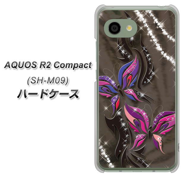 アクオス R2 コンパクト SH-M09 高画質仕上げ 背面印刷 ハードケース【1164 キラめくストーンと蝶】