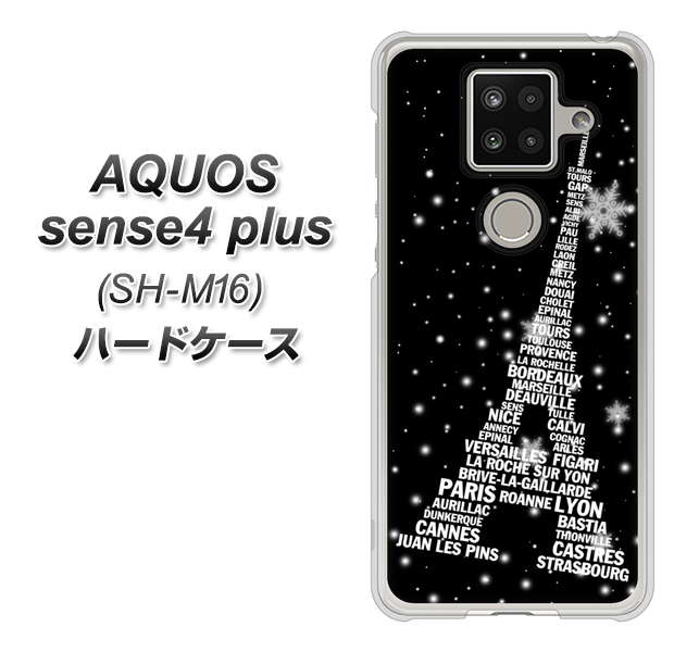 楽天モバイル アクオスセンス4 プラス SH-M16 高画質仕上げ 背面印刷 ハードケース【528 エッフェル塔bk-wh】