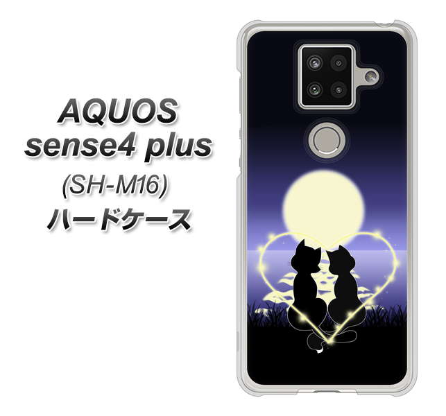 楽天モバイル アクオスセンス4 プラス SH-M16 高画質仕上げ 背面印刷 ハードケース【604 月明かりの恋ネコ】