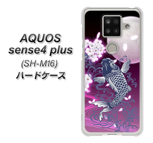 楽天モバイル アクオスセンス4 プラス SH-M16 高画質仕上げ 背面印刷 ハードケース【1029 月と鯉(紫)】