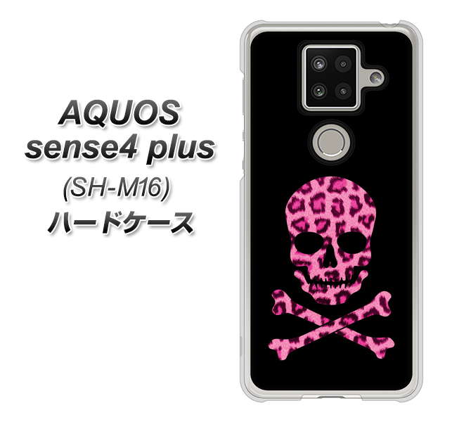 楽天モバイル アクオスセンス4 プラス SH-M16 高画質仕上げ 背面印刷 ハードケース【1079 ドクロフレームヒョウピンク】
