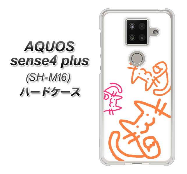 楽天モバイル アクオスセンス4 プラス SH-M16 高画質仕上げ 背面印刷 ハードケース【1098 手まねきする3匹のネコ】