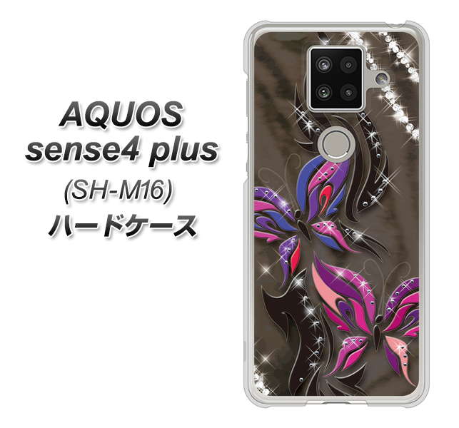 楽天モバイル アクオスセンス4 プラス SH-M16 高画質仕上げ 背面印刷 ハードケース【1164 キラめくストーンと蝶】