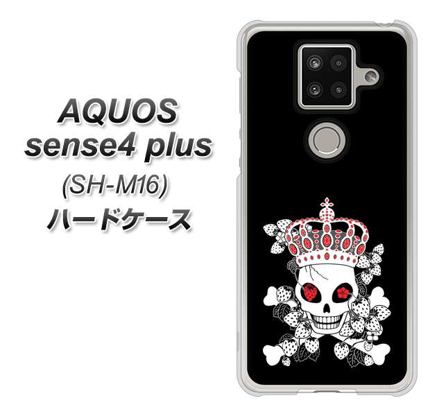 楽天モバイル アクオスセンス4 プラス SH-M16 高画質仕上げ 背面印刷 ハードケース【AG801 苺骸骨王冠(黒)】