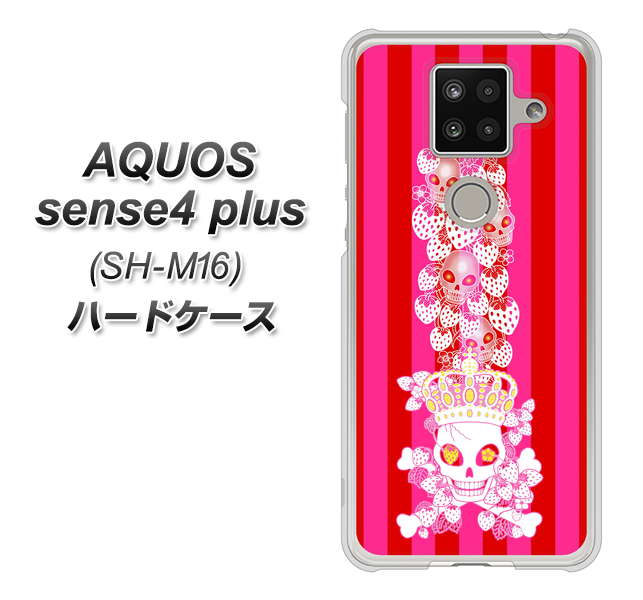 楽天モバイル アクオスセンス4 プラス SH-M16 高画質仕上げ 背面印刷 ハードケース【AG803 苺骸骨王冠蔦(ピンク)】