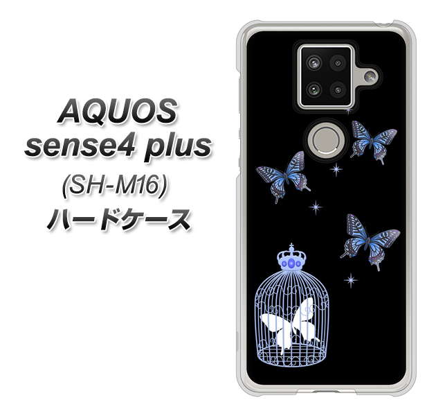 楽天モバイル アクオスセンス4 プラス SH-M16 高画質仕上げ 背面印刷 ハードケース【AG812 蝶の王冠鳥かご(黒×青)】