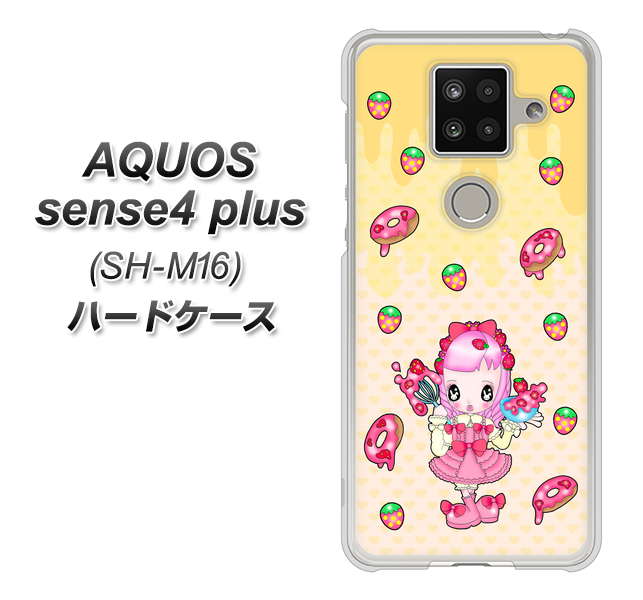 楽天モバイル アクオスセンス4 プラス SH-M16 高画質仕上げ 背面印刷 ハードケース【AG815 ストロベリードーナツ(水玉黄)】