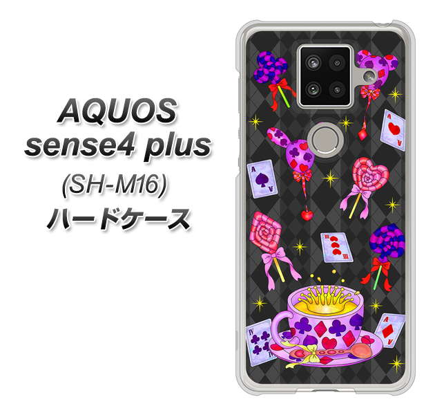 楽天モバイル アクオスセンス4 プラス SH-M16 高画質仕上げ 背面印刷 ハードケース【AG818 トランプティー(黒)】