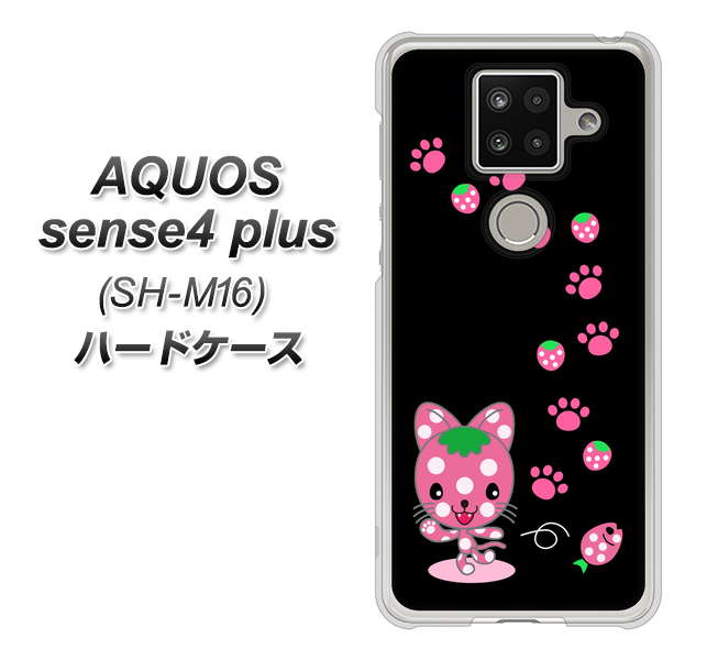楽天モバイル アクオスセンス4 プラス SH-M16 高画質仕上げ 背面印刷 ハードケース【AG820 イチゴ猫のにゃんベリー(黒)】