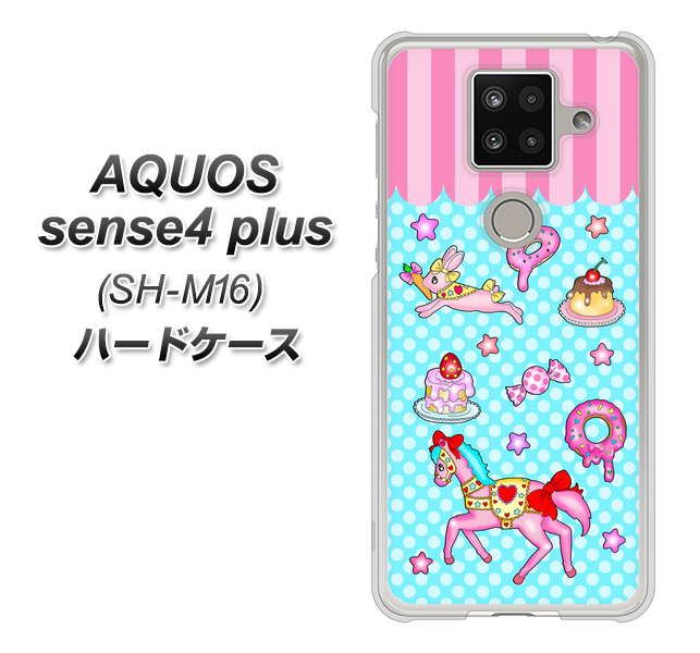 楽天モバイル アクオスセンス4 プラス SH-M16 高画質仕上げ 背面印刷 ハードケース【AG828 メリーゴーランド(水色)】