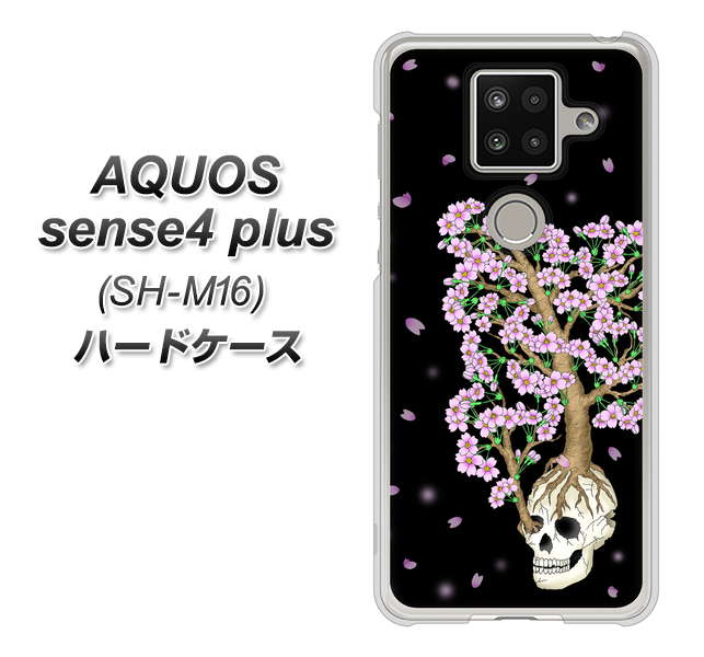 楽天モバイル アクオスセンス4 プラス SH-M16 高画質仕上げ 背面印刷 ハードケース【AG829 骸骨桜(黒)】